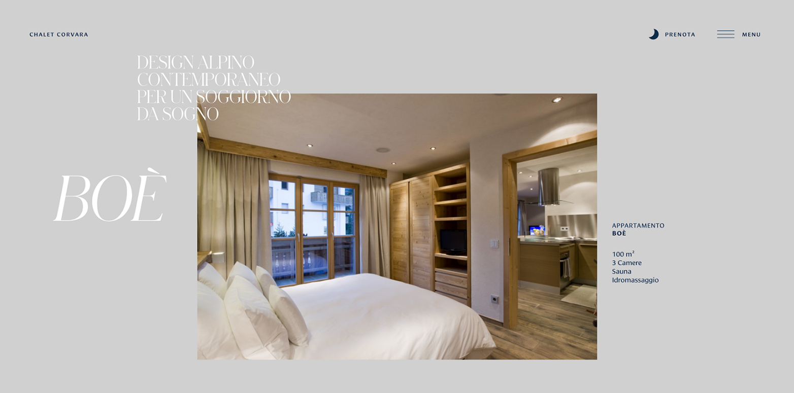 Balance and precision: the Chalet Corvara menu is designed to be simple and reflect the essence of the structure. Sliding to get straight to the point.