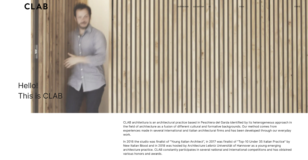 Il sito di CLAB architettura è totalmente in inglese, una scelta che ci è sembrata ovvia per un’azienda che ha grande respiro internazionale e che si misura con competitor di tutta Europa.