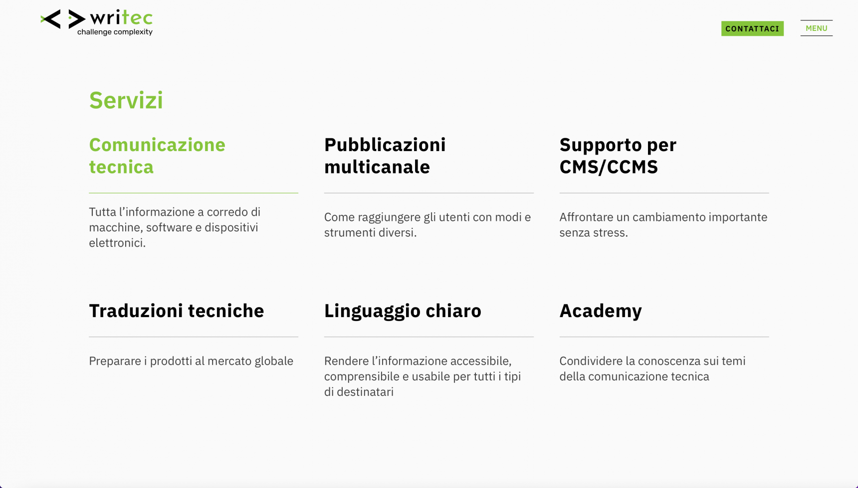 Realizzazione di un sito web per la comunicazione tecnica in ambito aziendale. Dai colori alla scelta del font, un mix perfetto tra chiarezza e semplicità per dare vita ad un design essenziale ma studiato ad hoc.